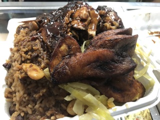 I've had the jerk chicken rice &peas with cabbage and plantains, then on my few visits I had the oxtails with rice & peas with cabbage and plantains. With oxtail gravy on the rice & peas and they're n